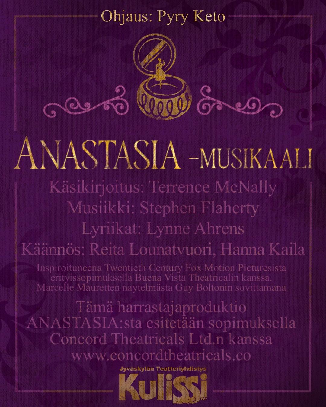 Twentieth Century Fox Motion Picturesin rakastettuun animaatioon ”Anastasia” perustuva musikaali valloittaa Laajavuoren lavan kesällä 2026💜